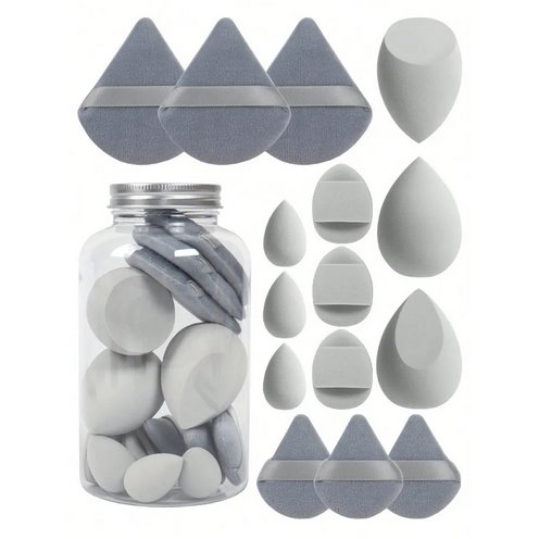 - Różne formy gąbek sprawdzają się zarówno do większych powierzchni twarzy, jak i trudno dostępnych miejsc, takich jak okolice nosa czy pod oczami. Zestaw idealny do codziennego makijażu.